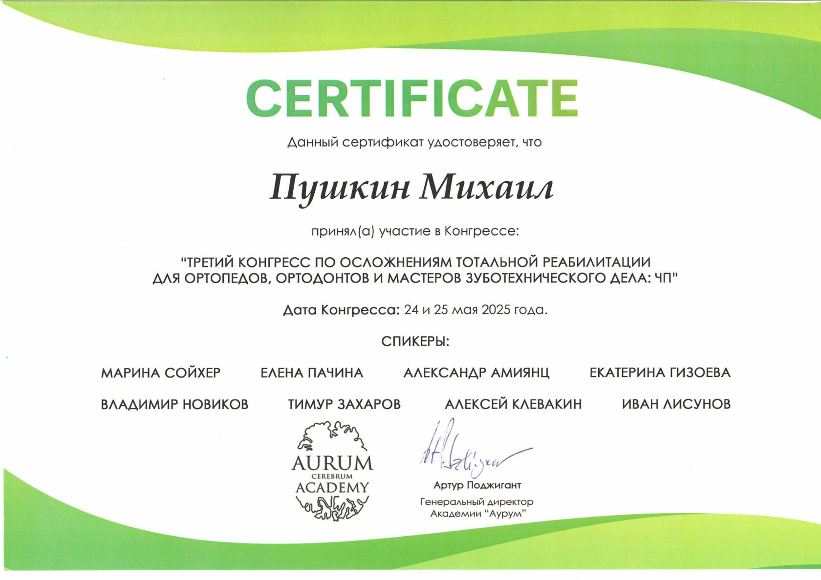 2017- «Цифровые концепции эстетического лечения-от дизайна улыбки до финальной реставрации», Dentsply Sirona
